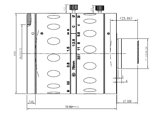 1.2インチ 25メガピクセル対応マシンビジョン単焦点レンズ f=75mm