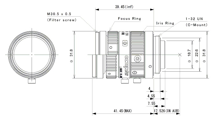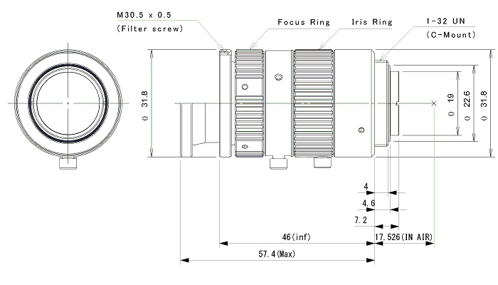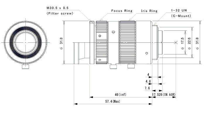 16メガピクセル対応レンズ f=75mm 対応素子:1/3〜2/3インチ