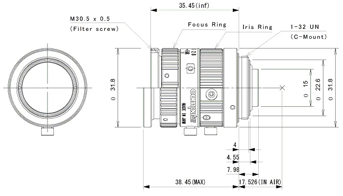 16メガピクセル対応レンズ f=35mm 対応素子:1/3〜2/3インチ