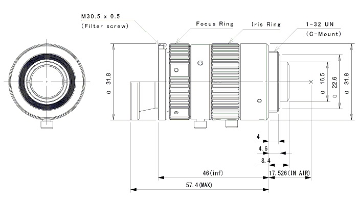 16メガピクセル対応レンズ f=16mm 対応素子:1/3〜2/3インチ