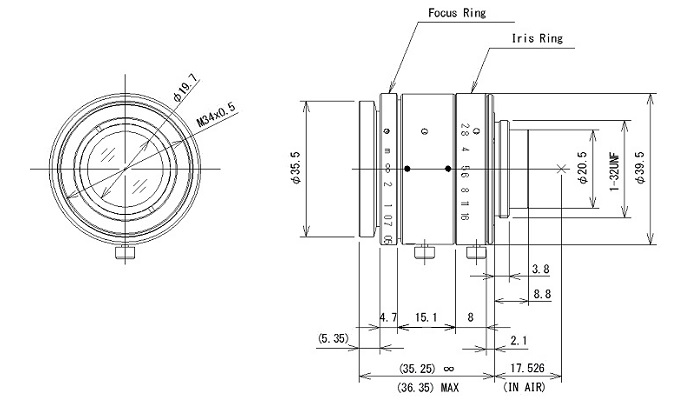 24メガピクセル対応レンズ f=35mm 対応素子:2/3〜1.1インチ