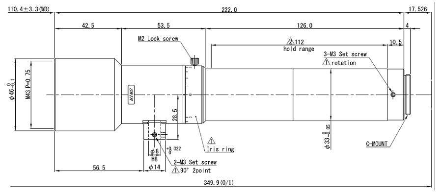 VS-THV2-110CO/S-SWIR 近赤外対応テレセントリックレンズ 倍率×2.0 同軸落射