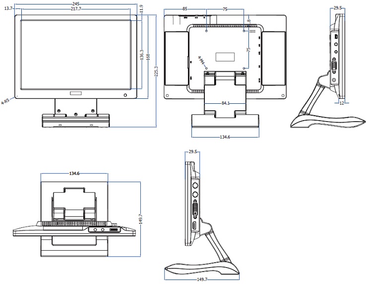 「LCD1015」「LCD1015W」は、解像度1280x800に350cd/m2の高輝度、上下左右170°の広視野角、800:1の高コントラスト比IPS液晶パネルを採用。 HDMI/DVI-D/VGA/ビデオ入力端子を搭載。