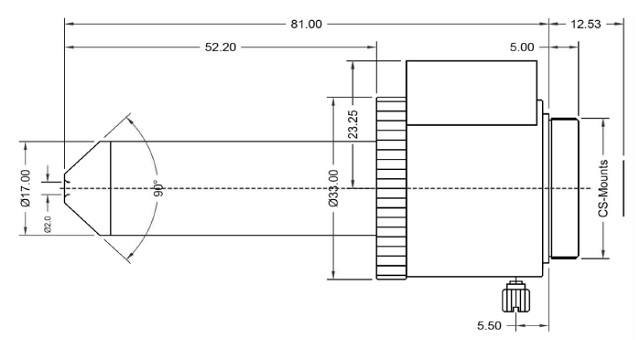 1/3型 ピンホールレンズ DCオートアイリス f=4.0mm/F1.8 1/3″Pinhole Lens DC auto-iris PHD0418CS KSM | ||||||||||||||||||||||||||||||||||||||||||||||