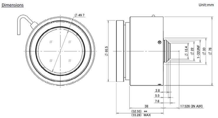 イメージャーサイズ Max.Image Format 12.8mm° × 9.6mm (φ16mm)