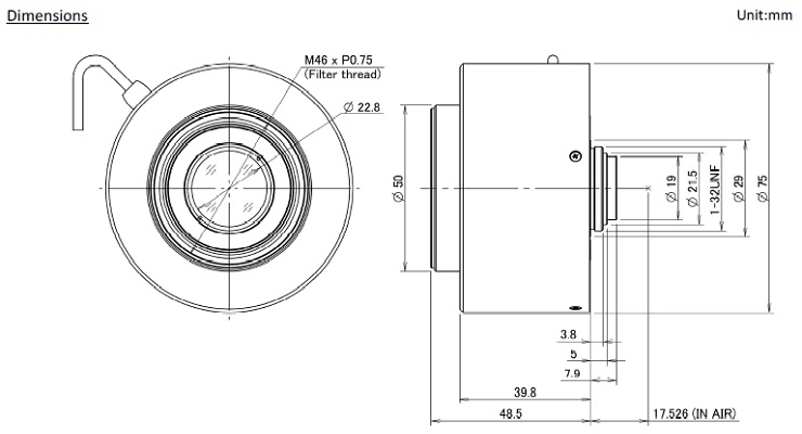 フィルターネジ径 Filter Thread M46 P=0.75mm
